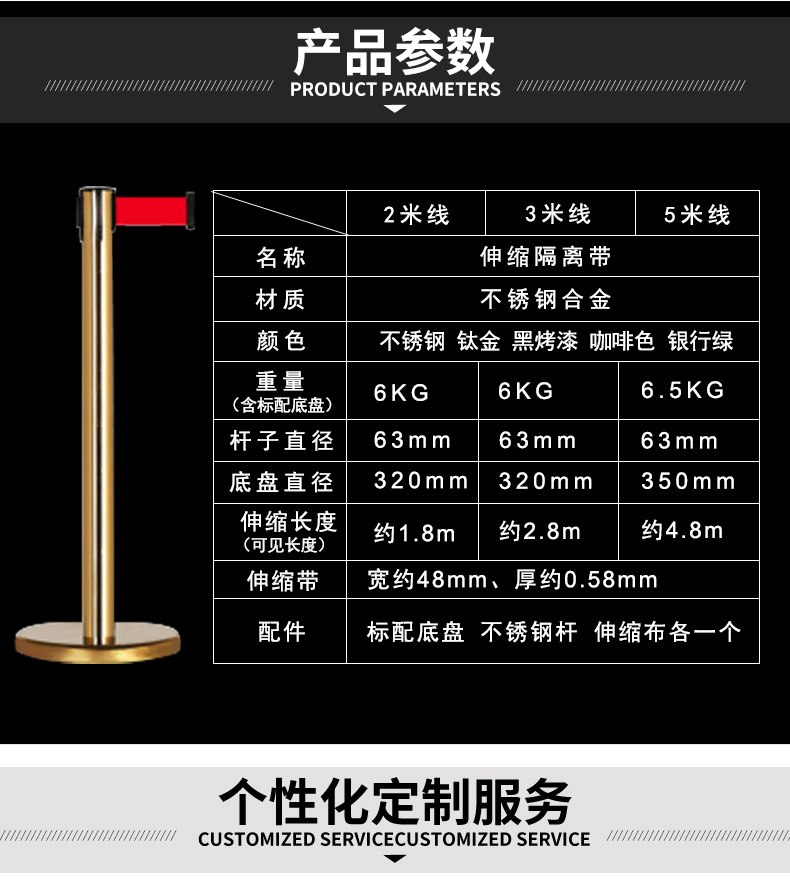 供应商:史泰博 品牌:伏兴 产地:中国 重量:0.000KG 销售单位:根 包装清单:一米线栏杆座 伸缩警戒隔离带 不锈钢围栏银行排队护栏*1