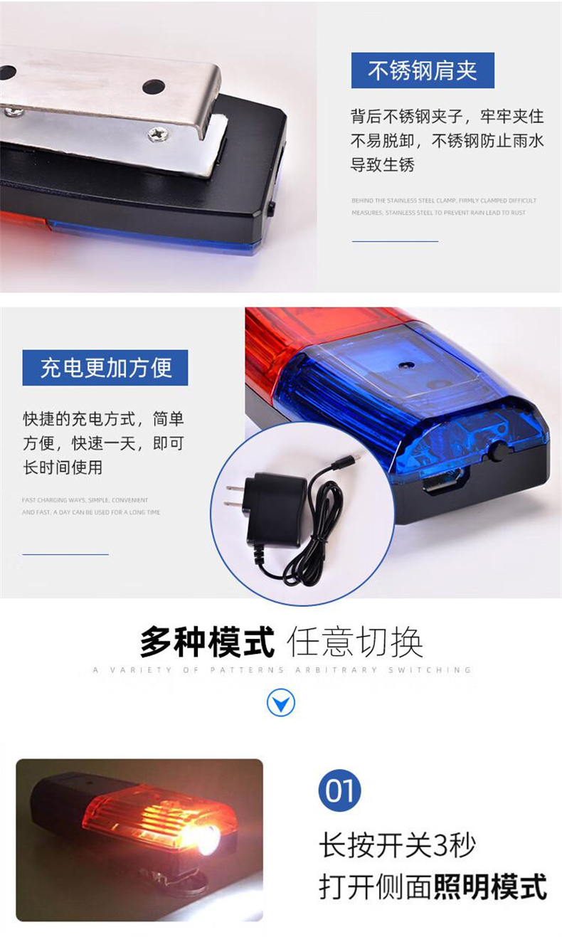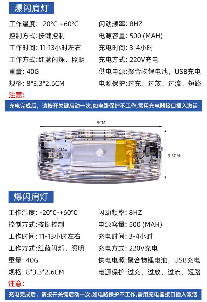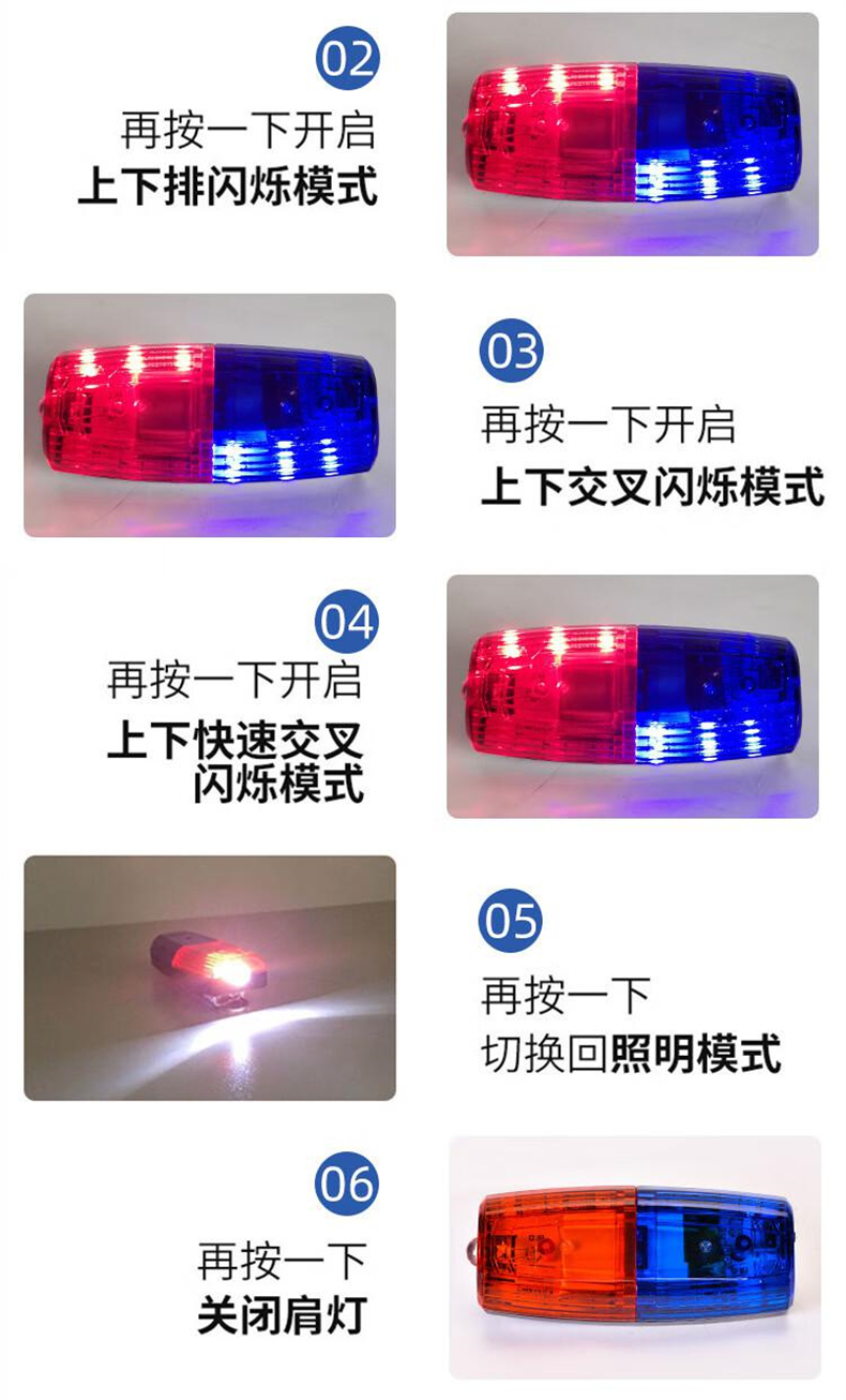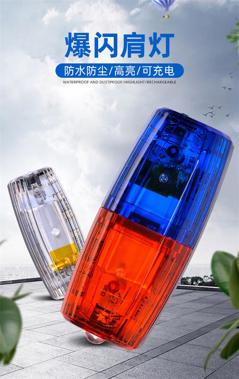 • 伏兴 C1323 肩灯 LED爆闪警示灯户外夜间巡逻执勤爆闪灯肩夹式信号灯 蓝色外壳按(个)销售