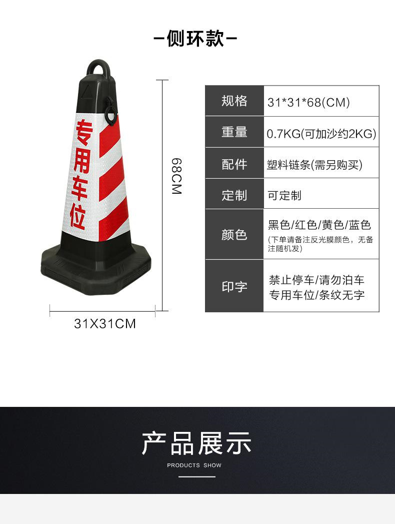 • 伏兴 C1364 反光路锥塑料方锥 68cm塑料方锥侧环款红白斜纹(禁止停车)按(个)销售