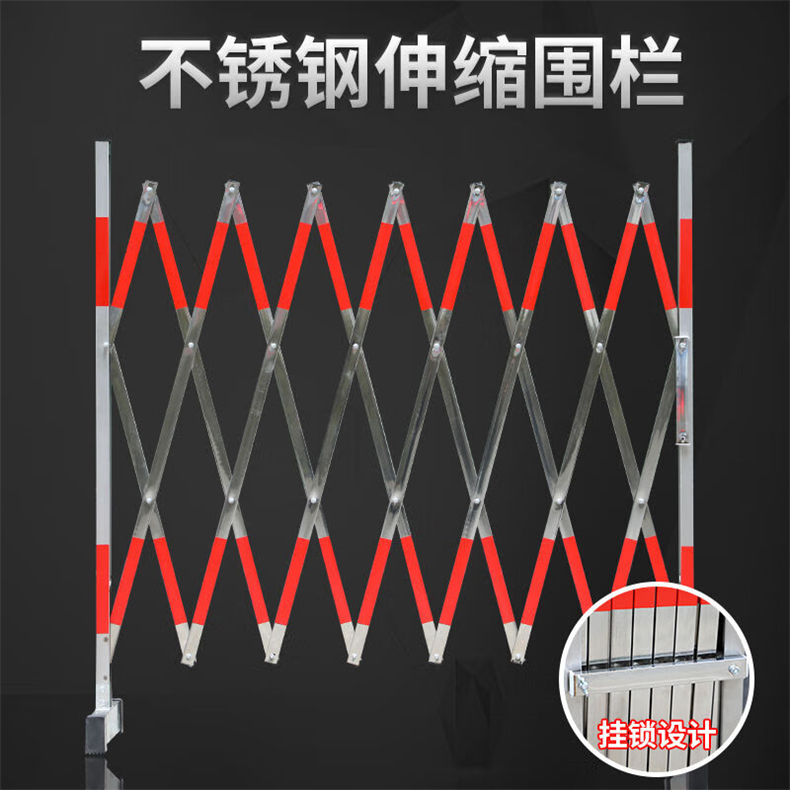 • 伏兴 C1538 不锈钢伸缩围栏 安全防护栏隔离围栏可移动折叠护栏 1.2*4米加厚款不锈钢按(套)销售