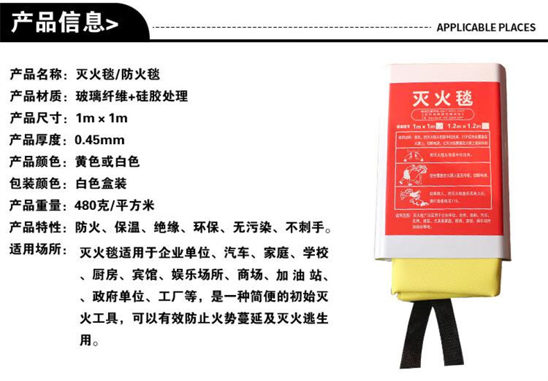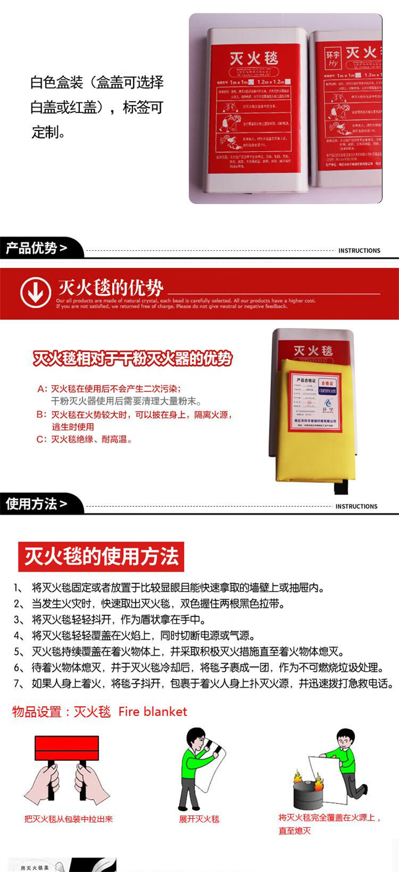 供应商:史泰博 品牌:伏兴 产地:中国 重量:0.000KG 销售单位:张 包装清单:硅胶灭火毯 应急逃生毯 酒店办公楼防火毯应急毯*1
