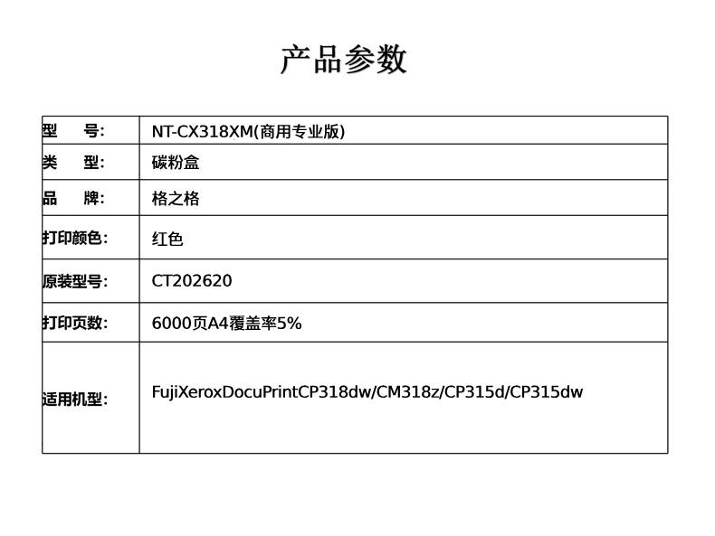 | 适用机型 | FujiXeroxDocuPrintCP318dw/CM318z/CP315d/CP315dw |