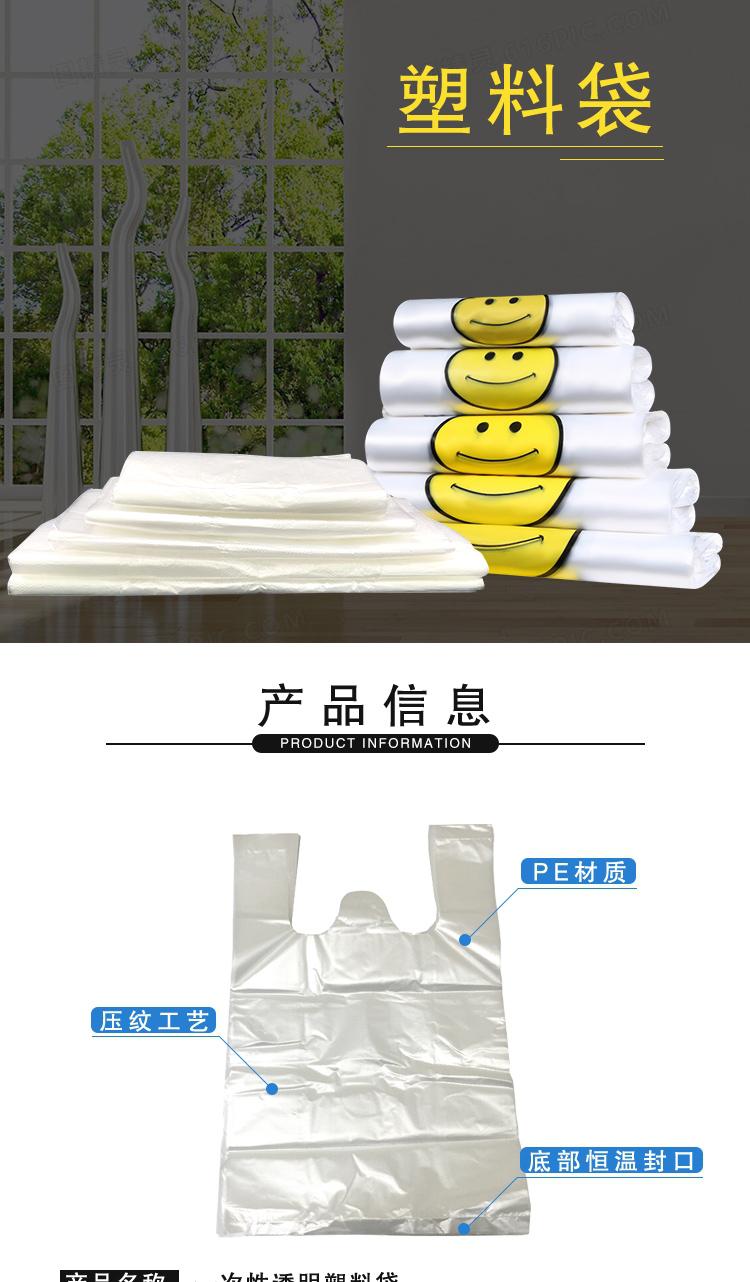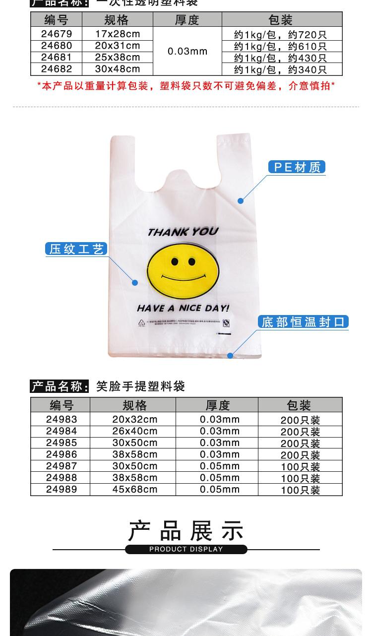 • 安赛瑞 24987 手提笑脸背心塑料袋 加厚超市购物袋打包袋 30x50cm 100个装 白色按(个)销售