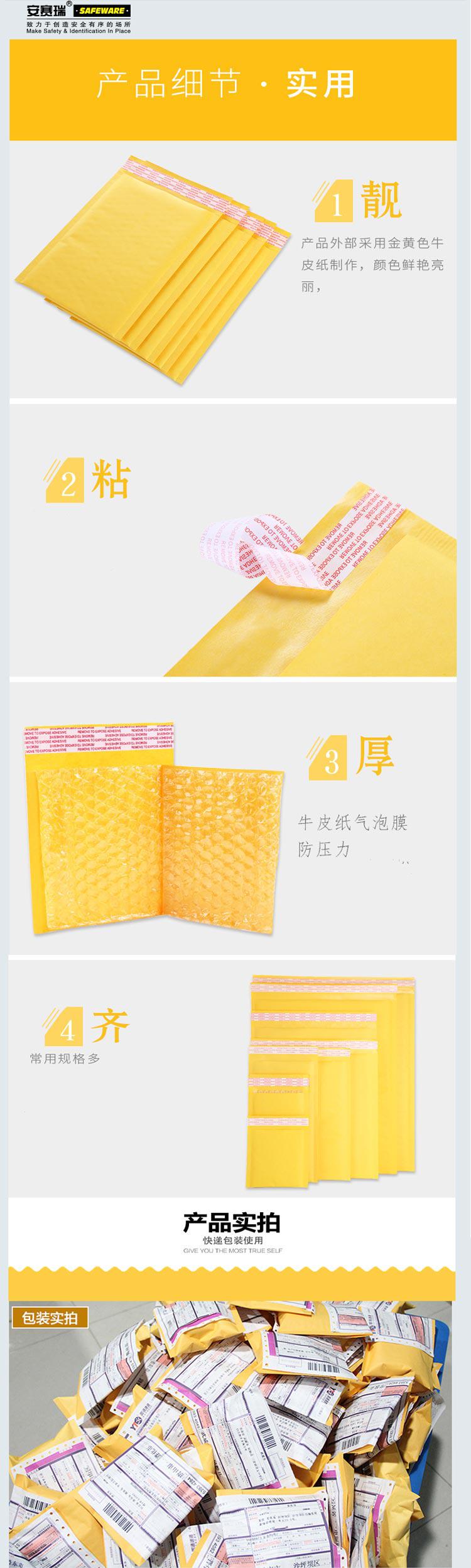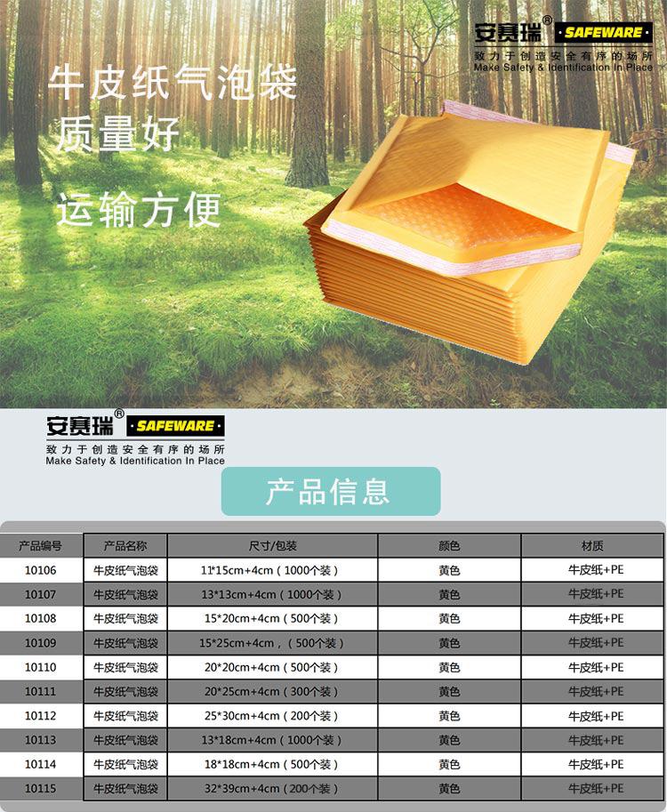 供应商:史泰博 品牌:安赛瑞 产地:中国 重量:0.000KG 销售单位:包 包装清单:牛皮纸气泡袋 防潮气泡信封袋*1