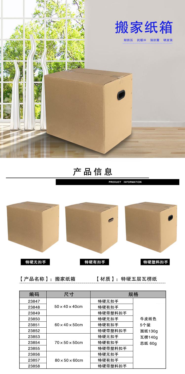 • 安赛瑞 23852 搬家纸箱 打包收纳箱快递箱整理 60×40×50cm 塑料扣手(5个装)按(包)销售