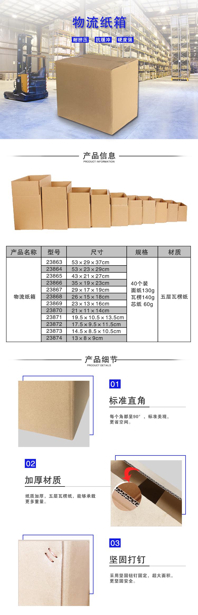 • 安赛瑞 23867 物流纸箱 包装盒物流打包搬家纸箱 飞机盒 5# 29×17×19cm(40个装)按(包)销售
