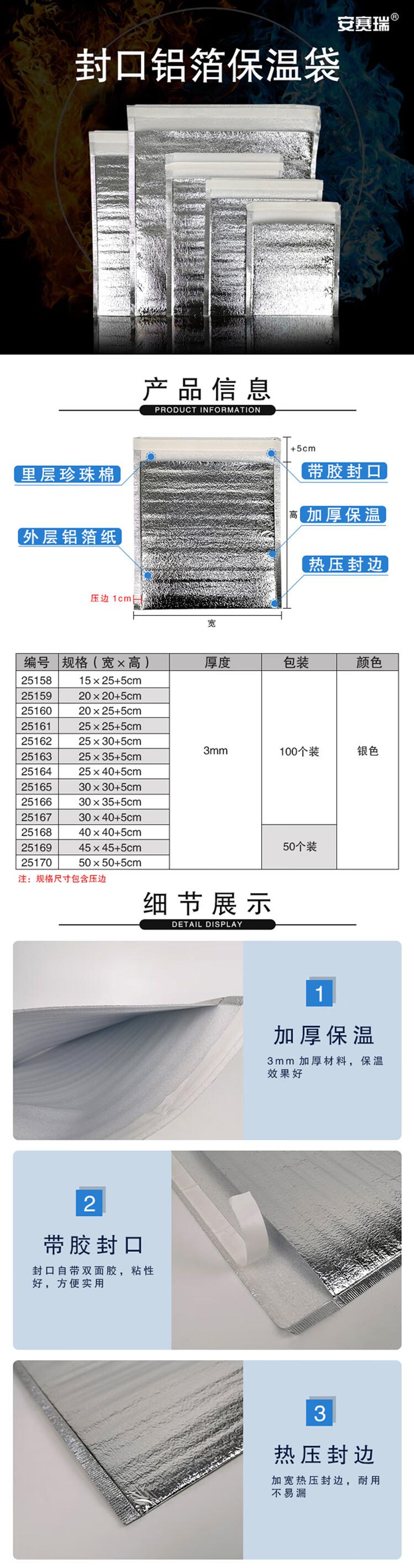 • 安赛瑞 25167 封口铝箔保温袋 加厚一次性自粘 隔热袋 30×40+5cm(100个装)按(包)销售