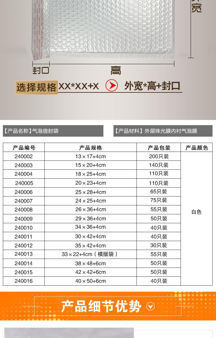 供应商:史泰博 品牌:安赛瑞 产地:中国 重量:0.000KG 销售单位:包 包装清单:珠光膜气泡袋 加厚自粘快递包装袋*1