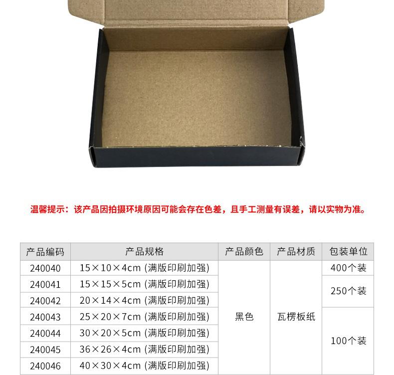 • 安赛瑞 240042 彩色飞机盒 服装包装盒 加厚特硬 瓦楞盒 20×14×4cm(250个装) 黑色按(包)销售