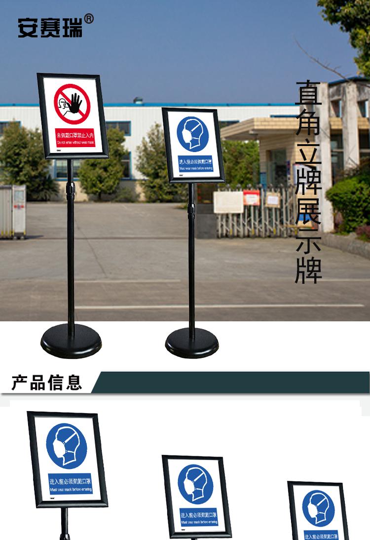 • 安赛瑞 28926 黑色直角立牌展示牌 (未佩戴口罩禁止入内) A4竖款落地按(个)销售