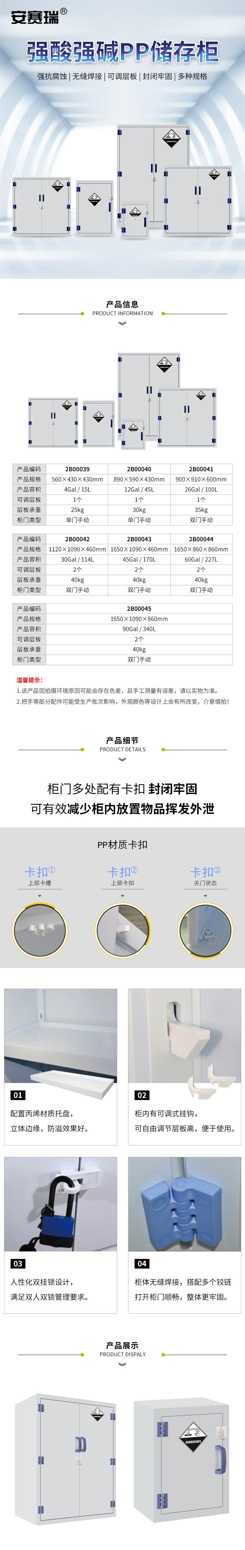 安赛瑞 2B00043 PP强酸碱柜 腐蚀性化学品安全存储柜试剂器皿柜防酸碱柜 45加仑双门1650x1090x460mm按(个)销售   收藏