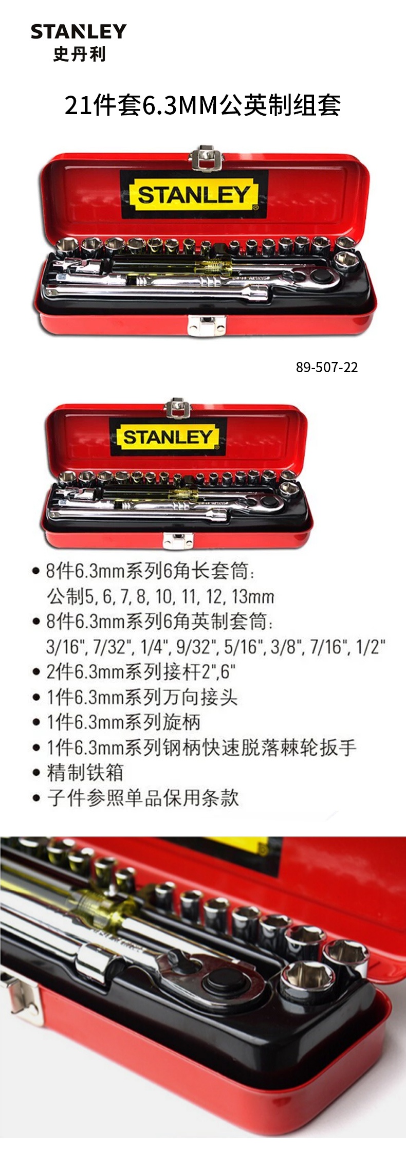 • 史丹利 89-507-22 21件套6.3MM公英制组套按(套)销售