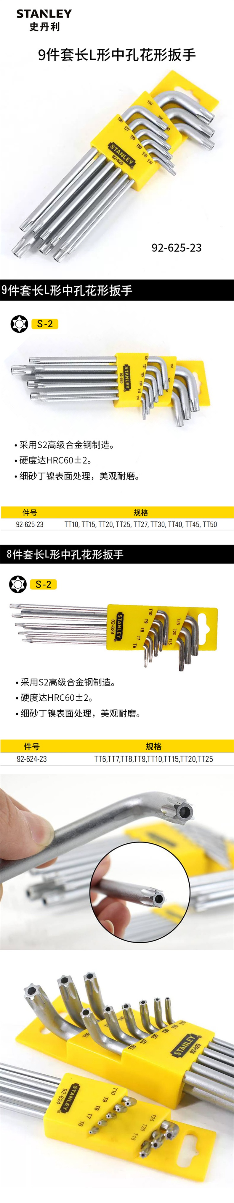 • 史丹利 92-625-23 9件套长L形中孔花形扳手TT10-TT50按(套)销售