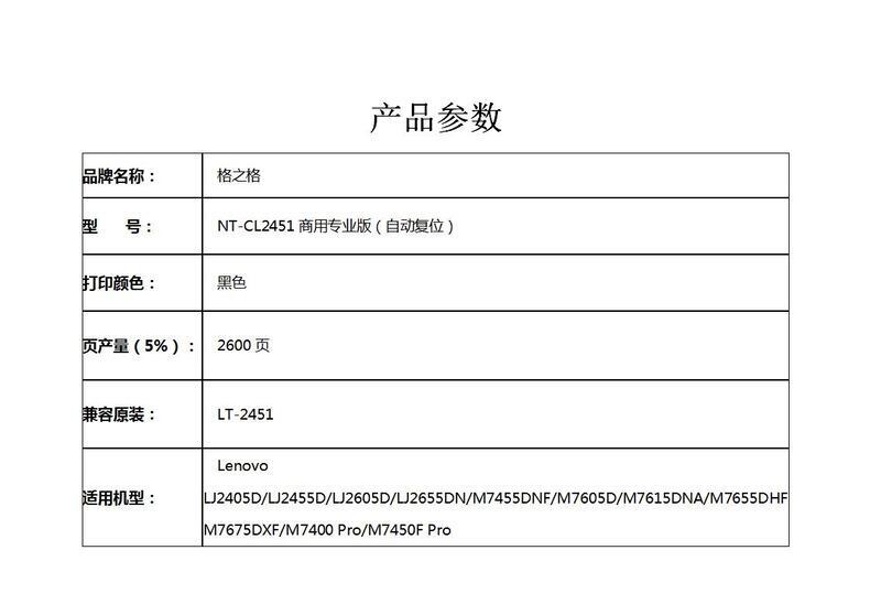 | 适用机型 | Lenovo LJ2405D/LJ2455D/LJ2605D/LJ2655DN/M7455DNF/M7605D/M7615DNA/M7655DHF M7675DXF/M7400 Pro/M7450F Pro |