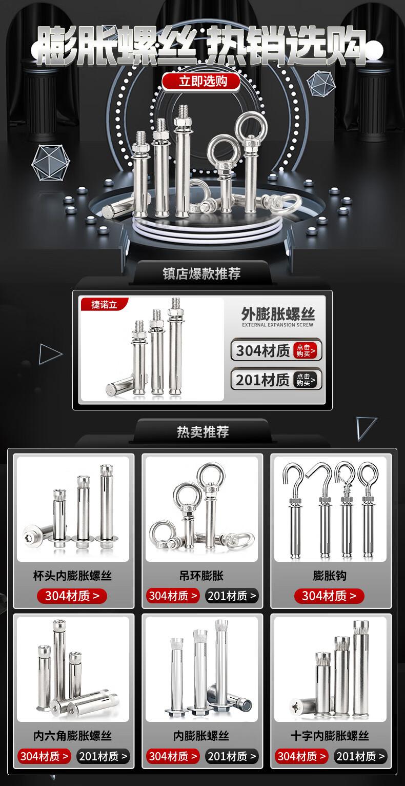 • 捷诺立 55235 201不锈钢内膨胀螺丝外六角墙体内胀螺栓 M8*120mm(10只装)按(包)销售