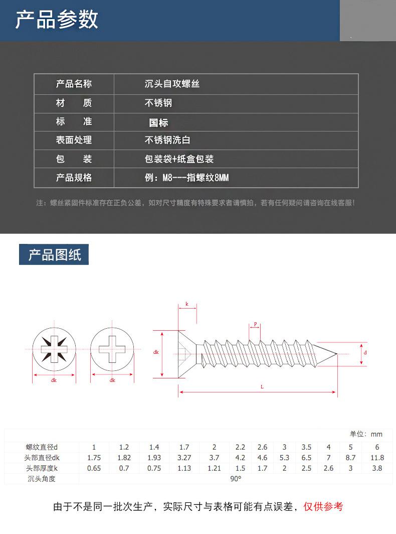 • 捷诺立 56752 304不锈钢自攻螺丝加长沉头十字螺丝钉 M5.5*25mm(50只)按(包)销售