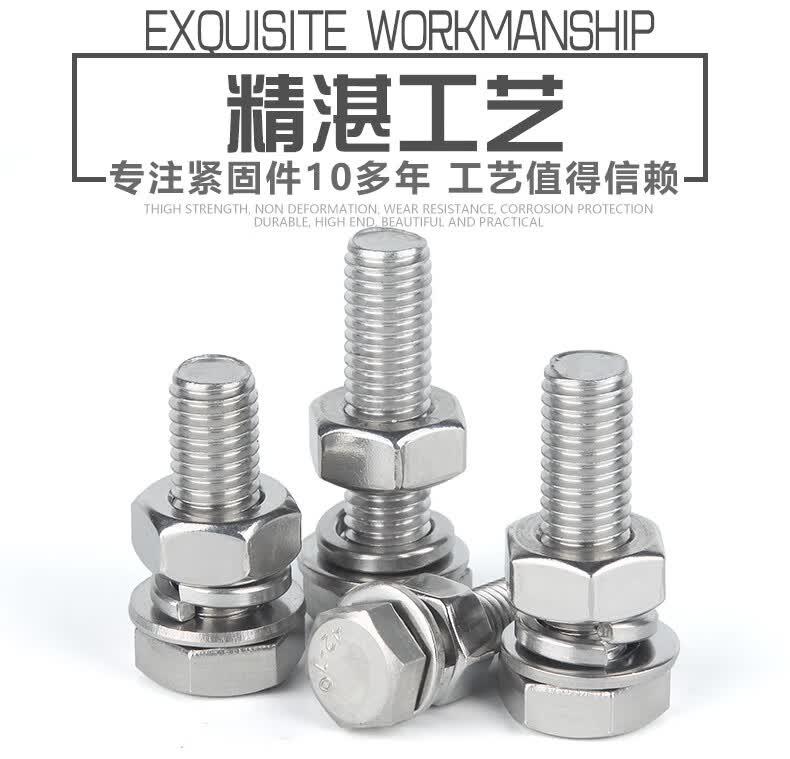 • 捷诺立 58309 304不锈钢外六角螺丝螺栓螺母平垫弹垫套装 M12*75mm(10套)按(包)销售