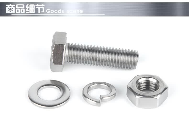 捷诺立 58373 304不锈钢外六角螺丝螺栓螺母平垫弹垫套装 M6*20mm(50套)按(包)销售   收藏