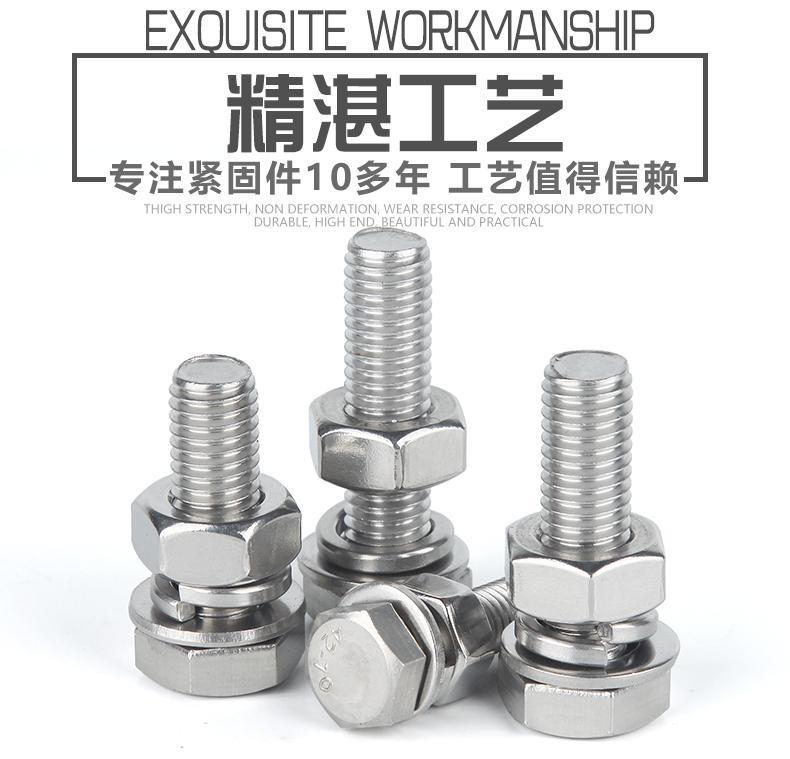 捷诺立 58375 304不锈钢外六角螺丝螺栓螺母平垫弹垫套装 M6*30mm(50套)按(包)销售   收藏