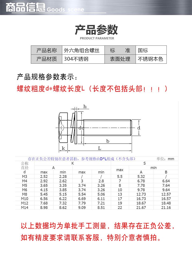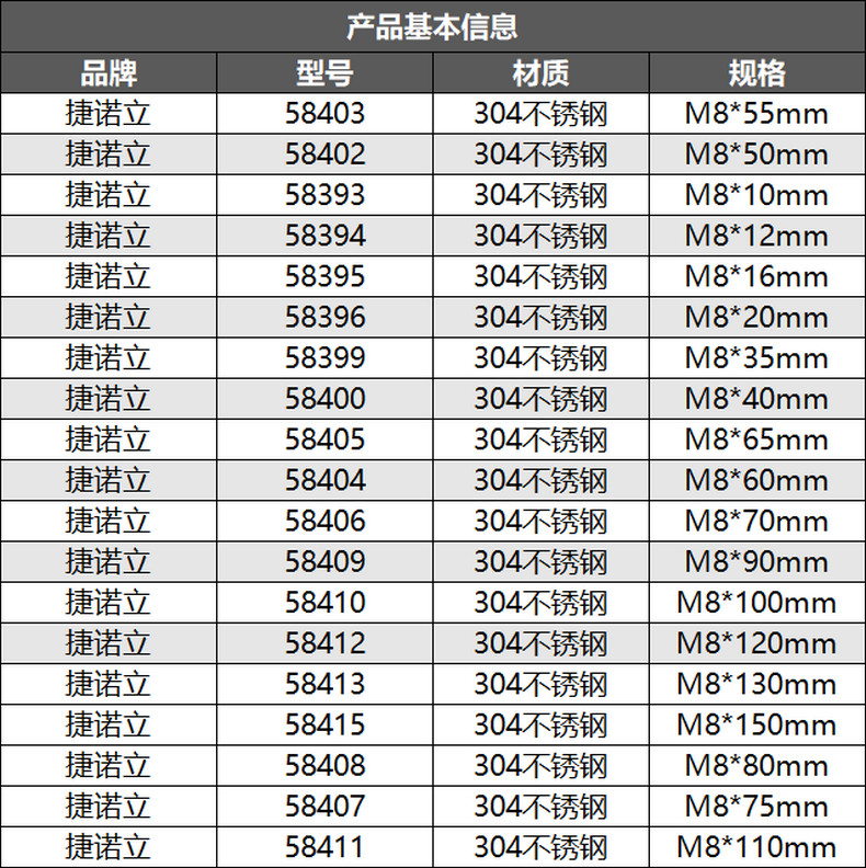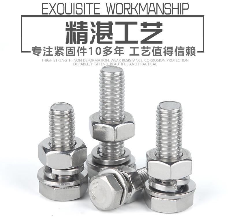 • 捷诺立 58413 304不锈钢外六角螺丝螺栓螺母平垫弹垫套装 M8*130mm(10套)按(包)销售