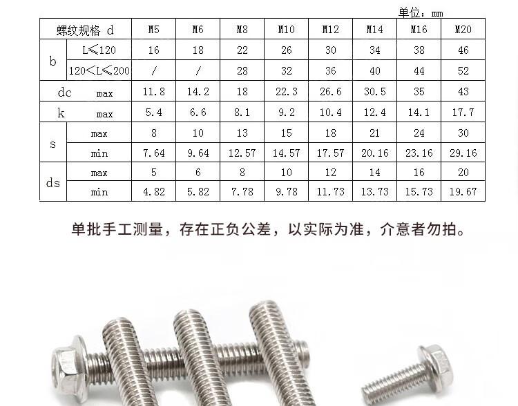 • 捷诺立 56989 法兰螺栓304不锈钢外六角带垫花齿防滑螺钉 M10*30mm10只按(包)销售