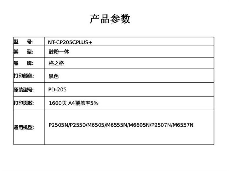 | 适用机型 | Pantum P2505N/M6505/M6505N/M6555N/M6605/M6605N/P2550 |