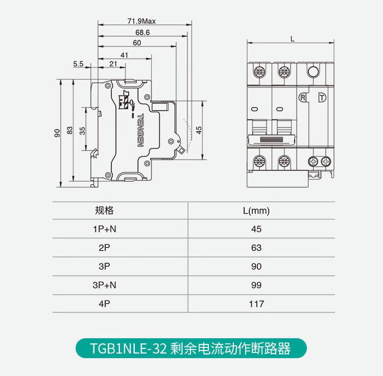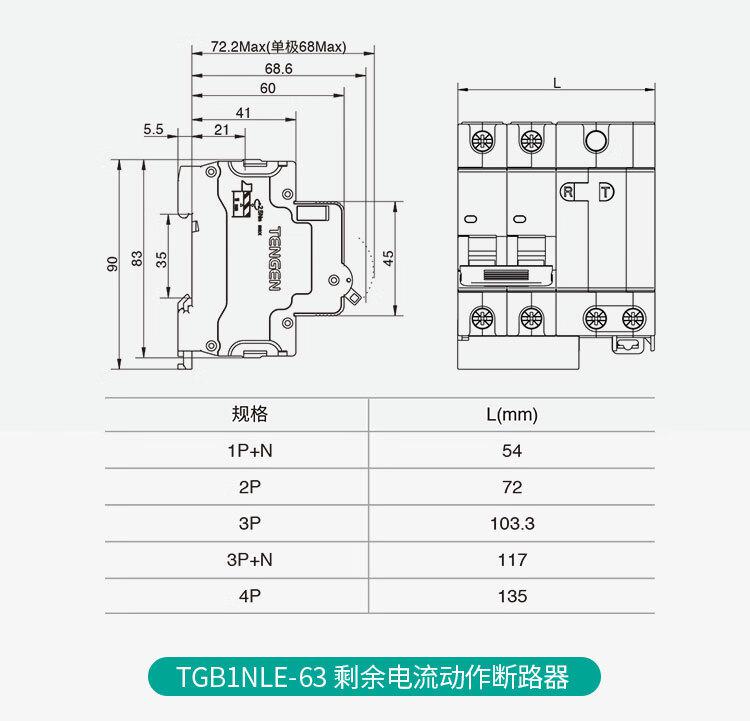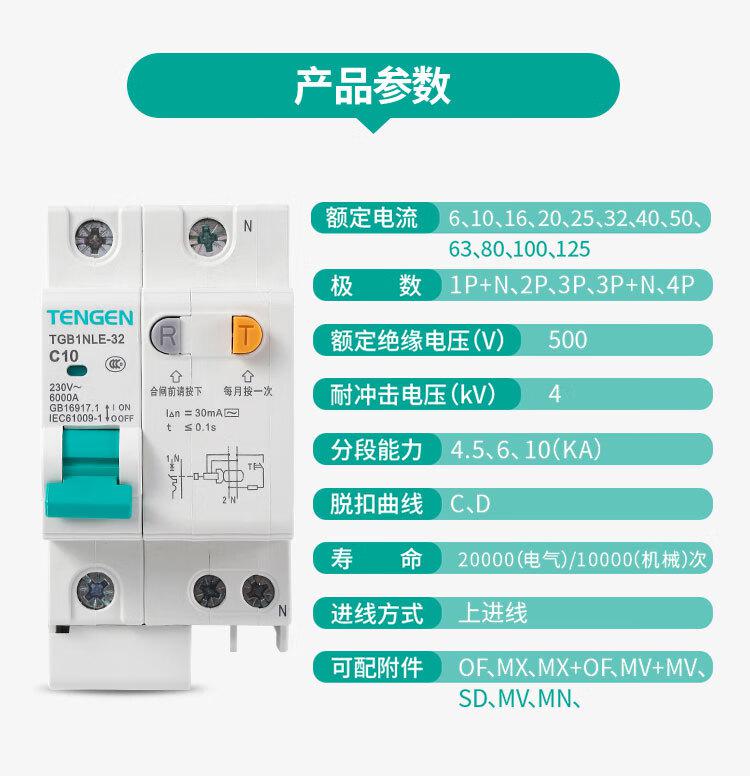 • 天正电气 TGB1NLE-63 3P C50 30mA 微型漏电保护断路器  TGB1NLE-63 3P C50 30mA(祥云3.0)按(个)销售