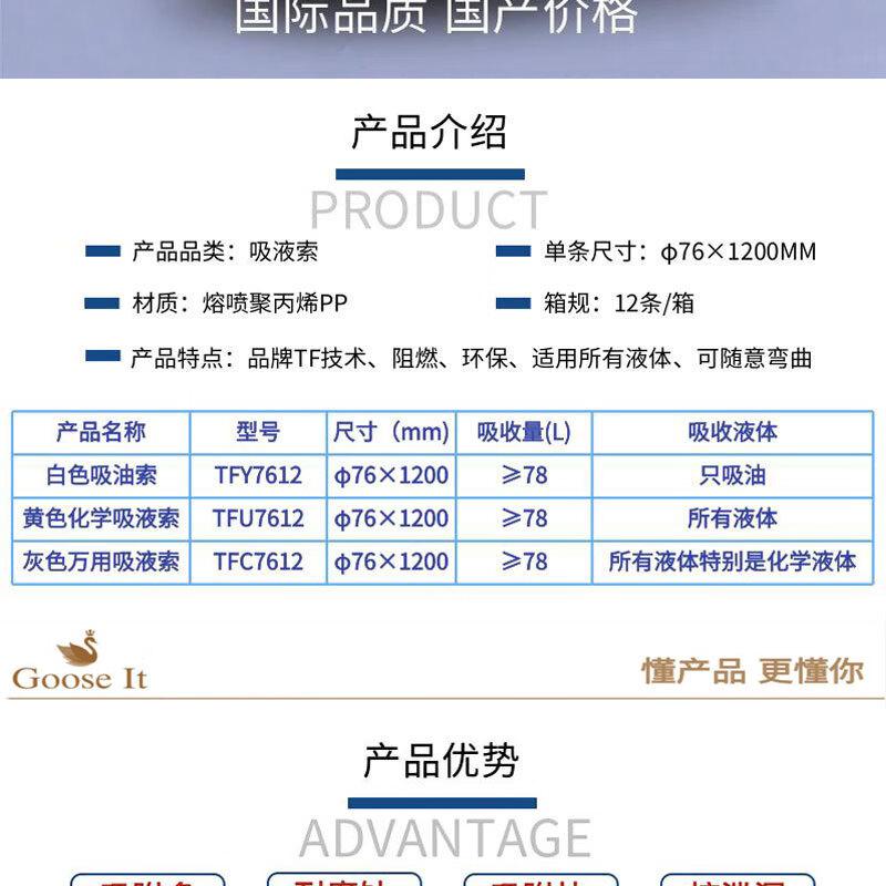 谷司帝 GI-XYS761200X12Y 黄色化学吸液索 吸附量62L 76×1200mm 黄色按(箱)销售   收藏