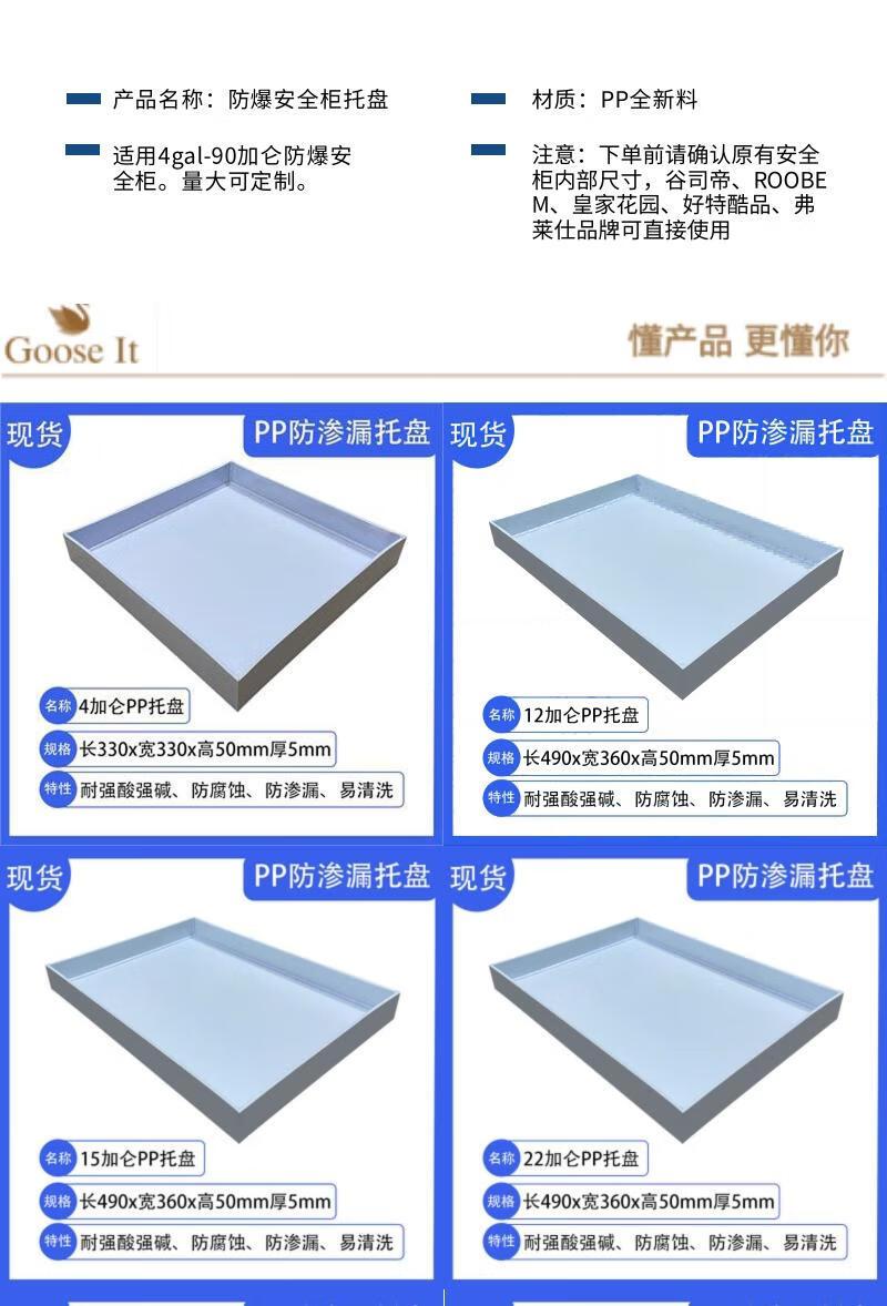 供应商:史泰博 品牌:谷司帝 产地:中国 重量:0.000KG 销售单位:个 包装清单:防爆柜安全柜PP托盘防泄漏托盘*1