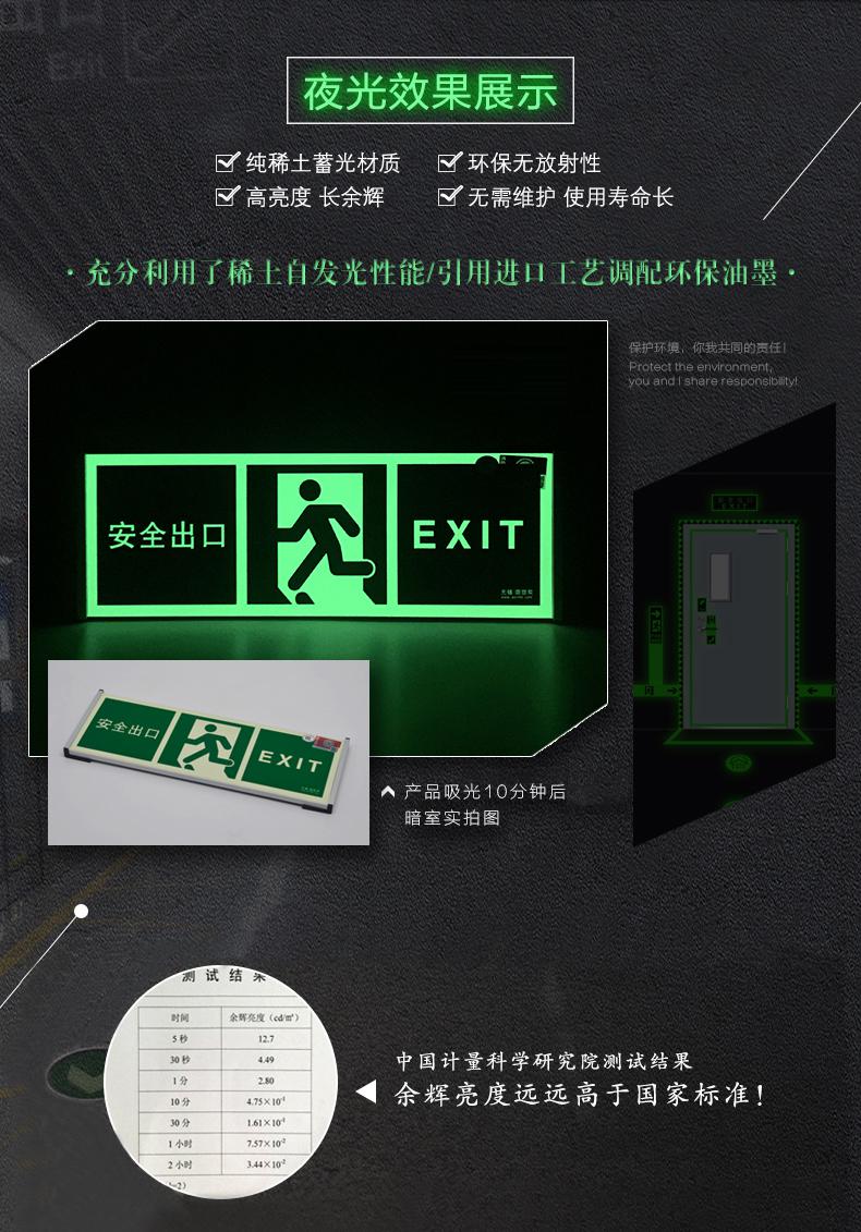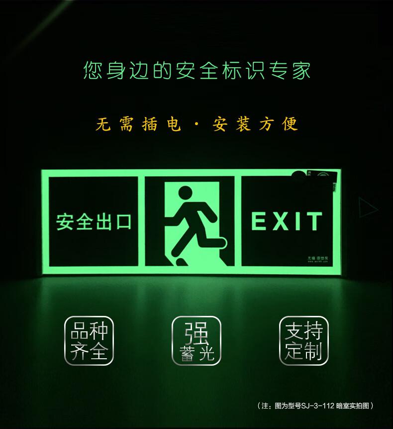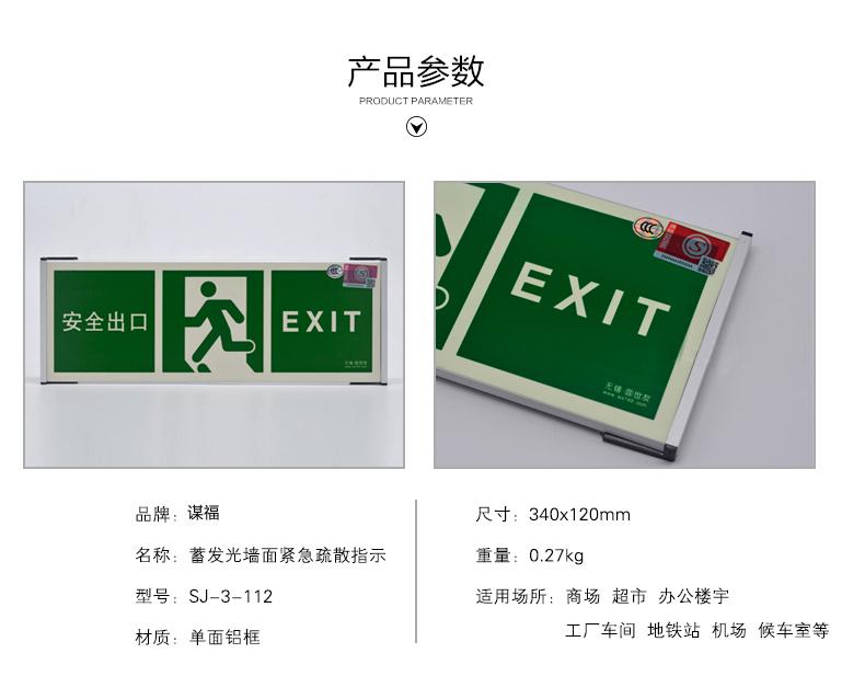 • 谋福 9704 3C认证夜光安全出口铝框标识牌 3C款认证消防应急指示牌 安全出口  2个起订按(个)销售