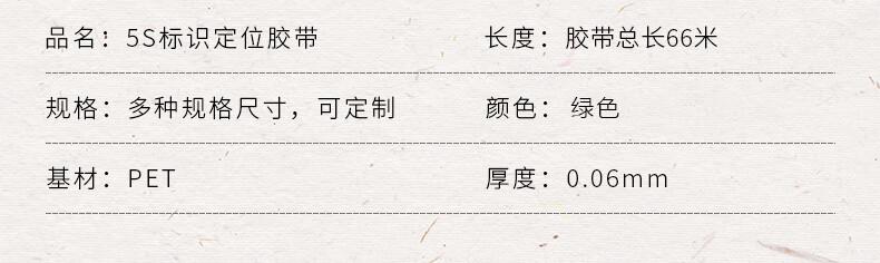 • 谋福 276 5S桌面定位标识划线胶带 绿色 0.5CM宽*66米(5卷)  8组起订按(组)销售