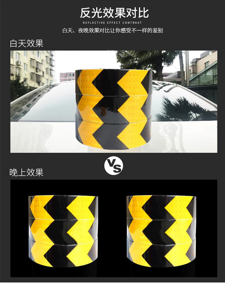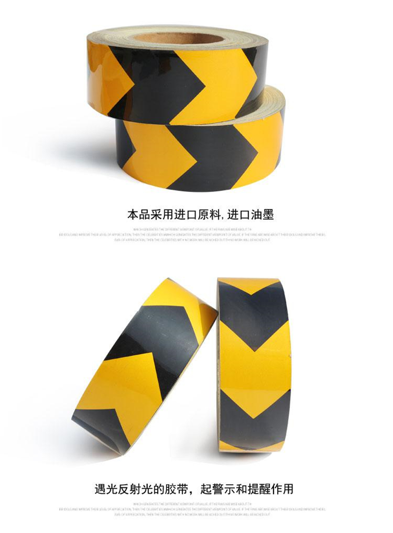 谋福 9477 导向箭头 反光贴 高亮晶格标识 防撞警示胶带 (晶格黑黄箭头5cm*45.7m) 2卷起订按(卷)销售   收藏