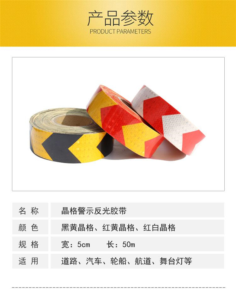 供应商:史泰博 品牌:谋福 产地:中国 重量:0.000KG 销售单位:卷 包装清单:导向箭头 反光贴 高亮晶格标识 防撞警示胶带*1