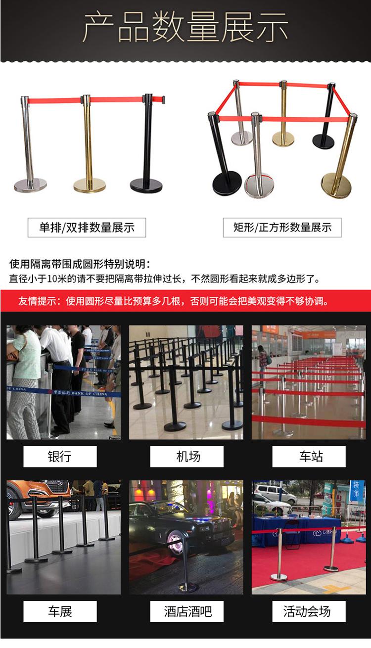 • 谋福 188 隔离带伸缩带一米线围栏 隔离护栏 隔离带栏杆 2米不锈钢款(加厚底座)  2根起订按(根)销售