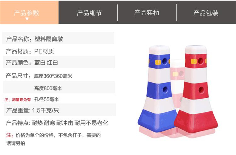供应商:史泰博 品牌:谋福 产地:中国 重量:0.000KG 销售单位:个 包装清单:塑料隔离墩 隔离护栏围栏*1