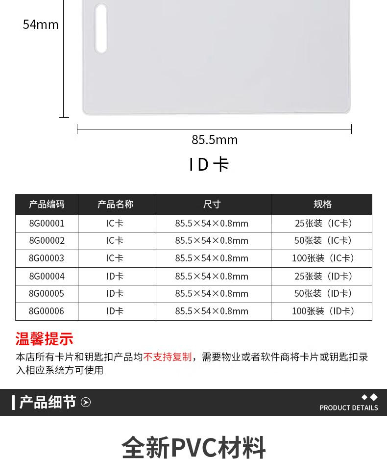 • 安赛瑞 8G00005 ID卡 办公室小区停车场电梯不可复制门禁白卡 85.5x54x0.8mm 50张装按(包)销售