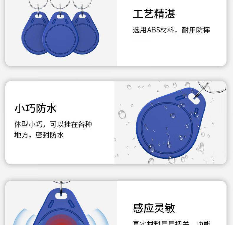 供应商:史泰博 品牌:安赛瑞 产地:中国 重量:0.000KG 销售单位:包 包装清单:IC钥匙扣 办公室小区停车场电梯不可复制门禁卡扣 蓝色*1