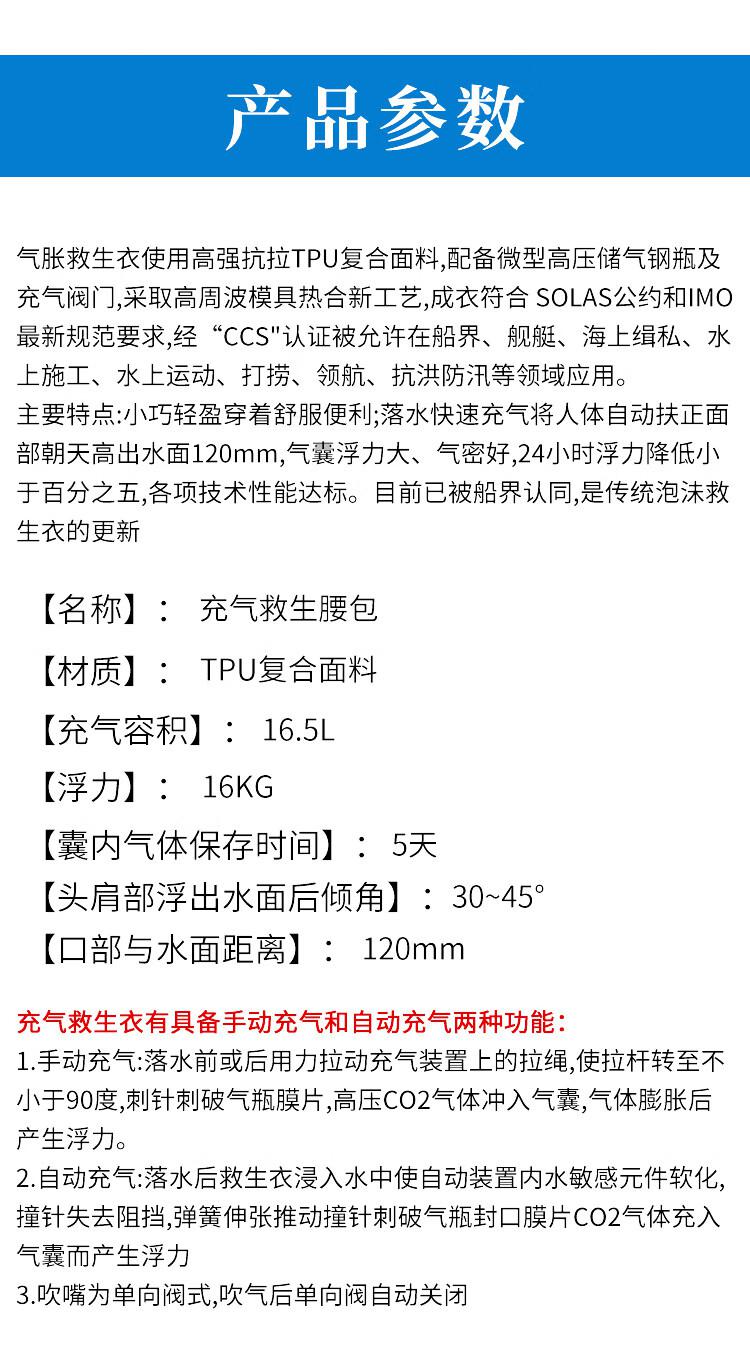 供应商:史泰博 品牌:谋福 产地:中国 重量:0.000KG 销售单位:个 包装清单:自动充气腰包救生衣*1