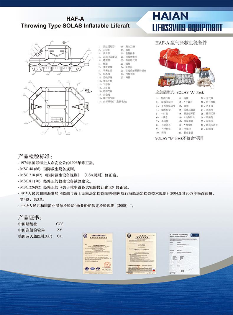 • 谋福 293 救生艇筏船用急救释放筏救生筏 HAF-A15抛投式救生筏(15人款)EC证书按(个)销售