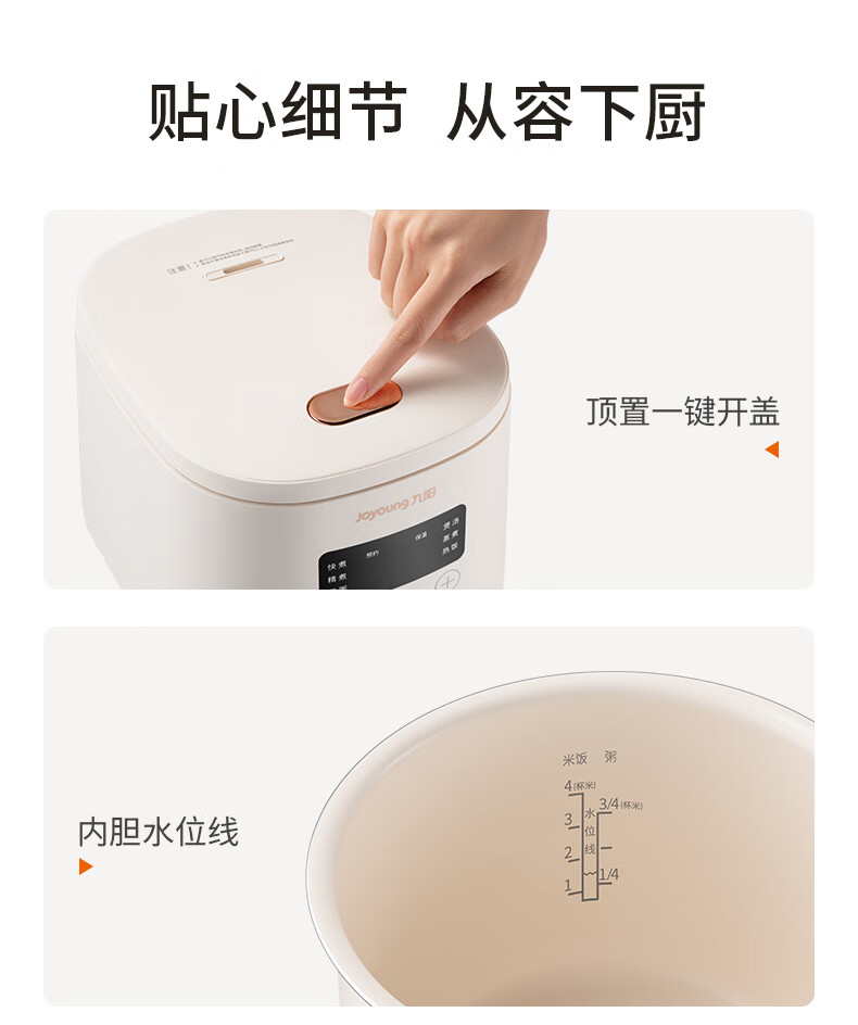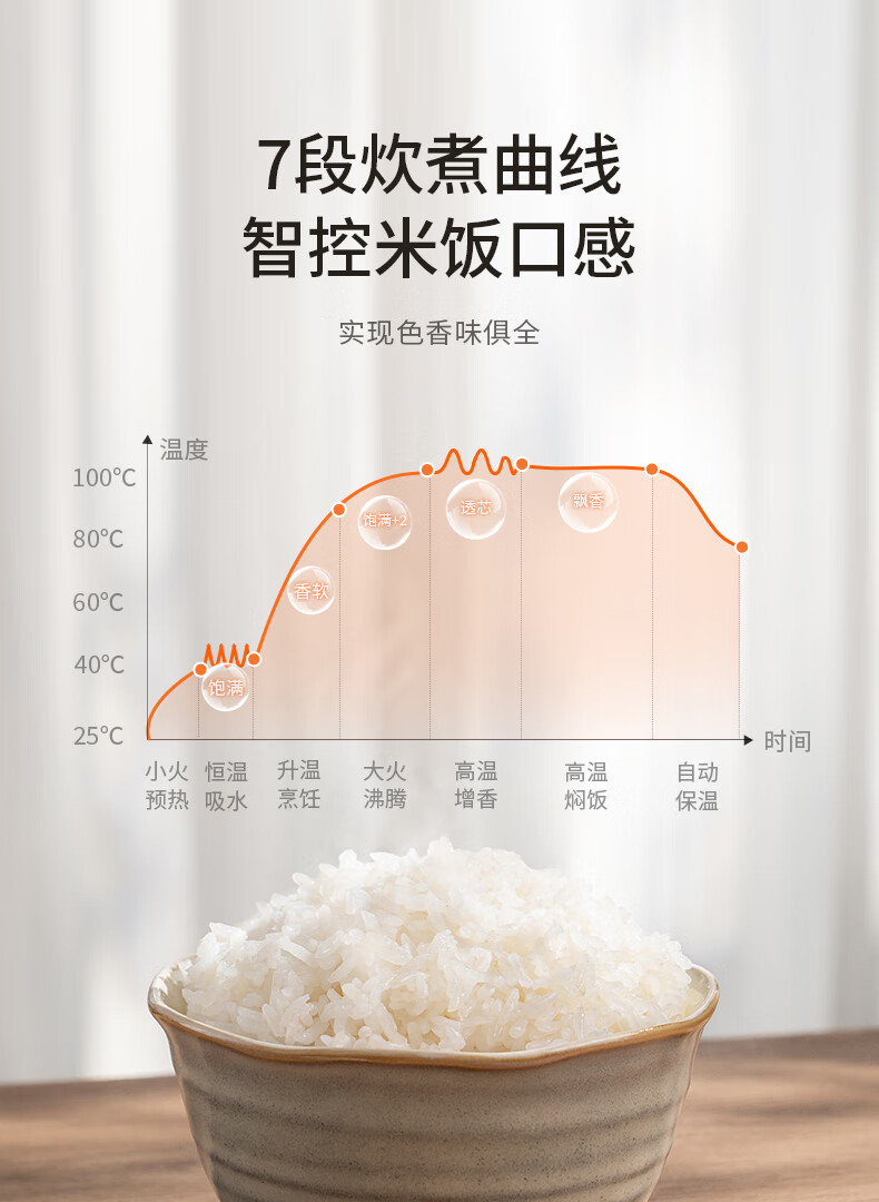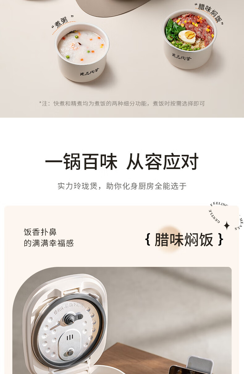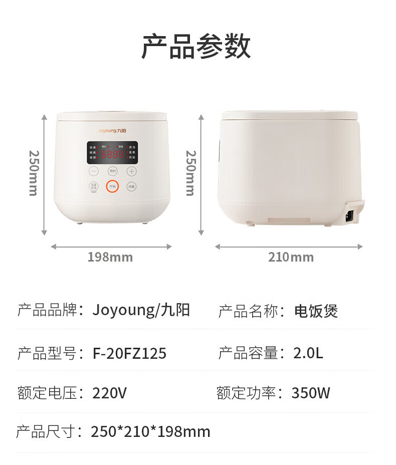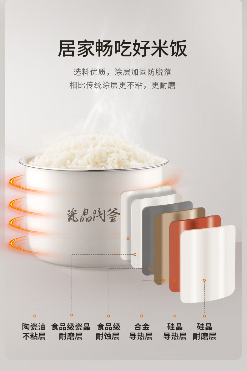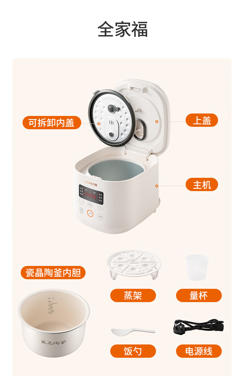 | 包装清单 | 饭勺、量杯、蒸架、电源线、说明书、主机、内胆 |