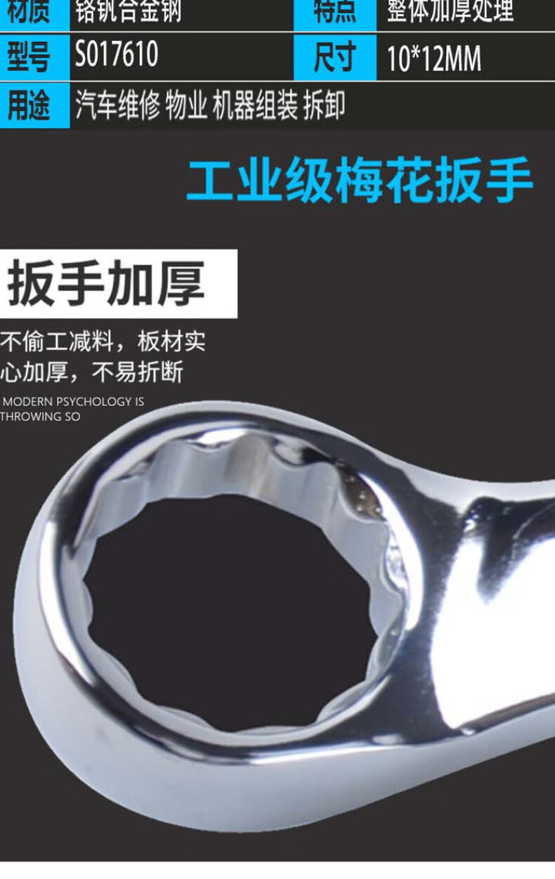 供应商:史泰博 品牌:钢盾 产地:中国 销售单位:把 包装清单:公制精抛光双梅花扳手S017610 10*12mm*1