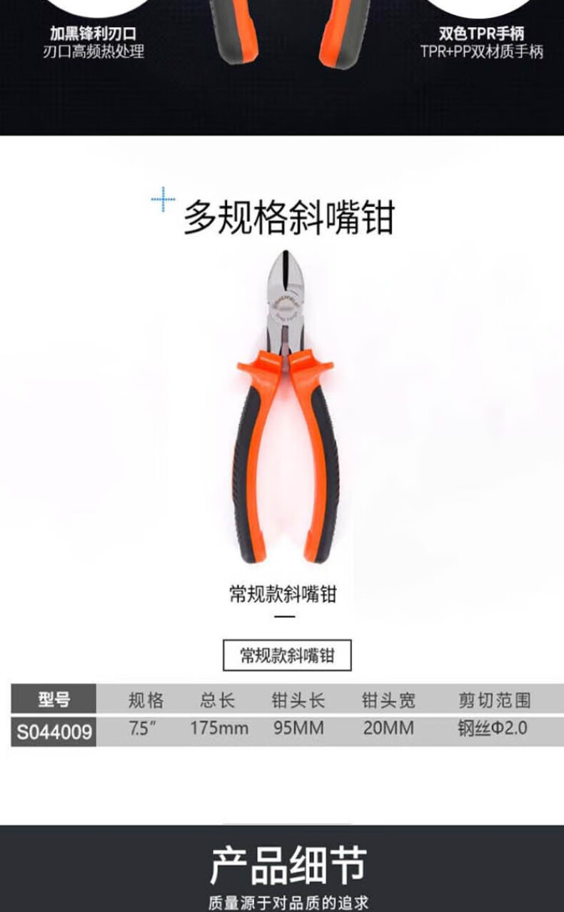 钢盾 S044009 美式斜嘴钳 7.5英寸按(把)销售   收藏