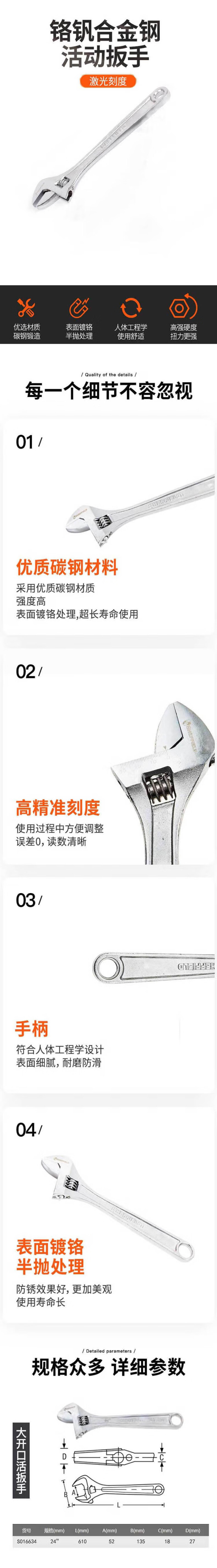 供应商:史泰博 品牌:钢盾 产地:中国 销售单位:把 包装清单:活络扳手 S016634 24英寸*1