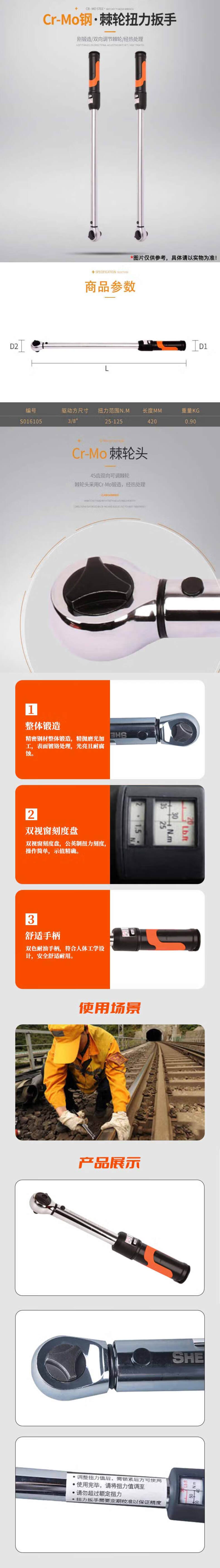 • 钢盾 S016105 10mm系列专业级可调式扭力扳手 25-125N.m按(把)销售