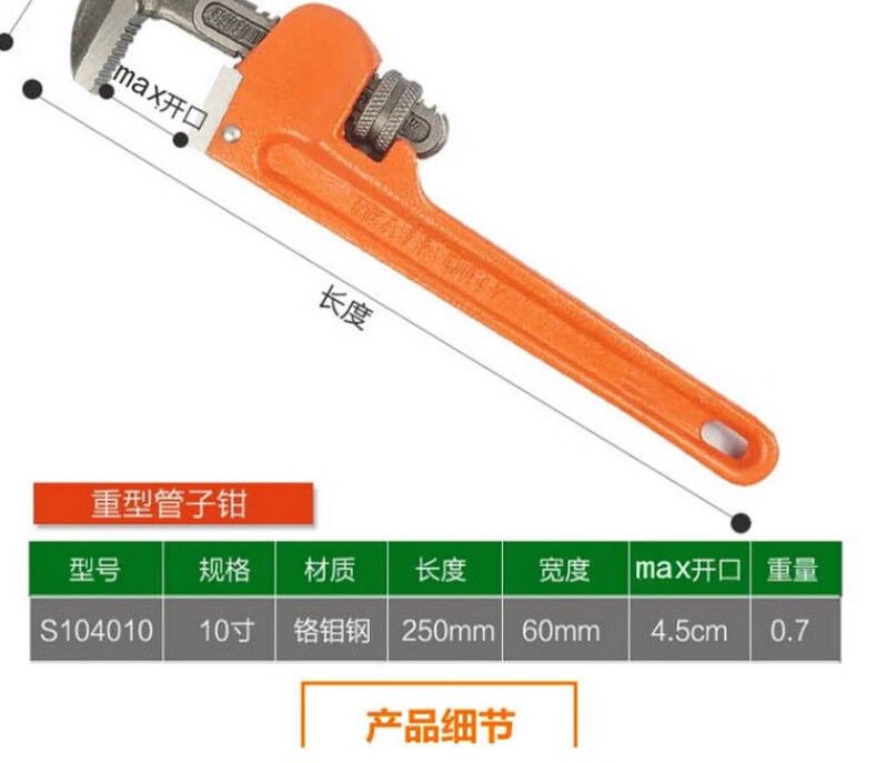 钢盾 S104010 管钳 10英寸按(把)销售   收藏