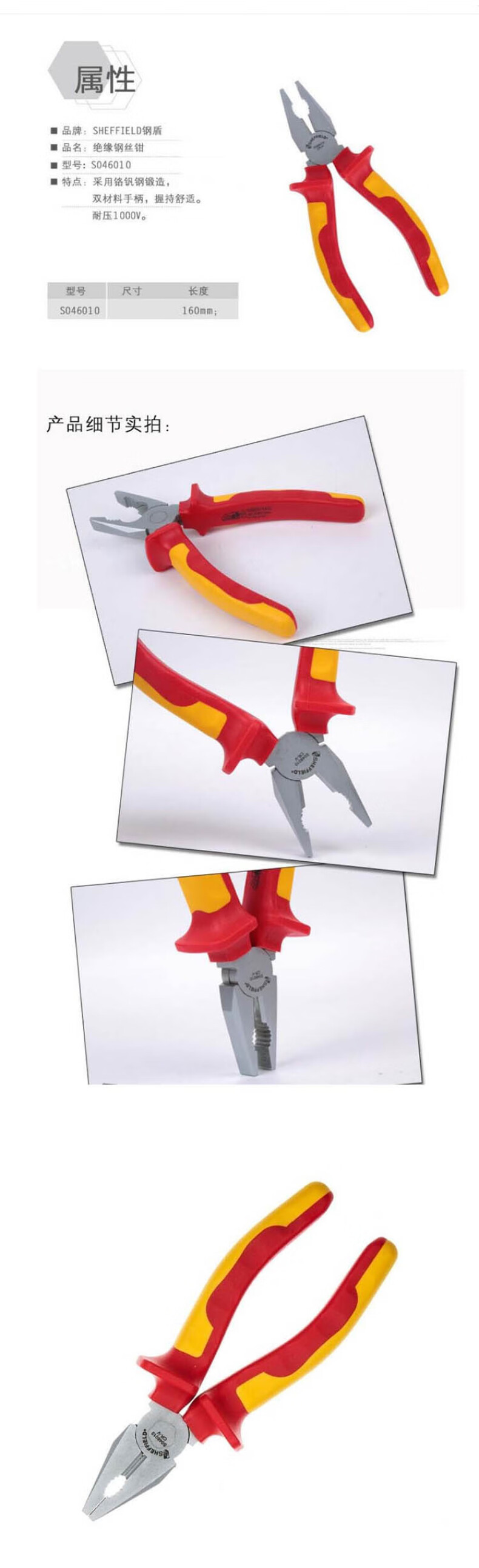 • 钢盾 S046010 绝缘钢丝钳 6英寸按(把)销售
