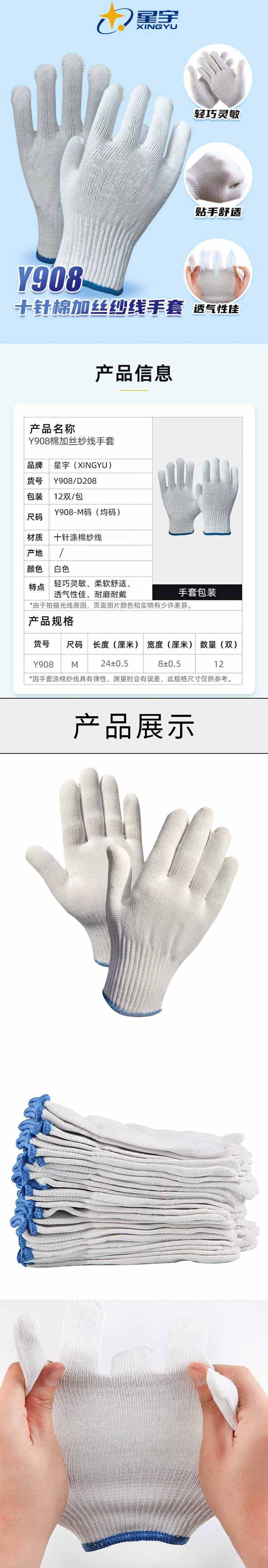 • 星宇 Y908 手套 M码 白色 劳保涤棉线手套12付/包 一包装按(包)销售