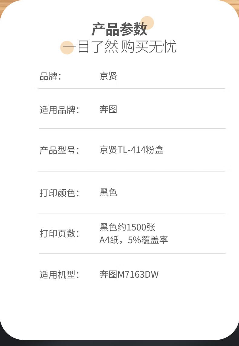 京贤 TL-414 粉盒 1500页 黑色 适用奔图M7163DW按(只)销售   收藏