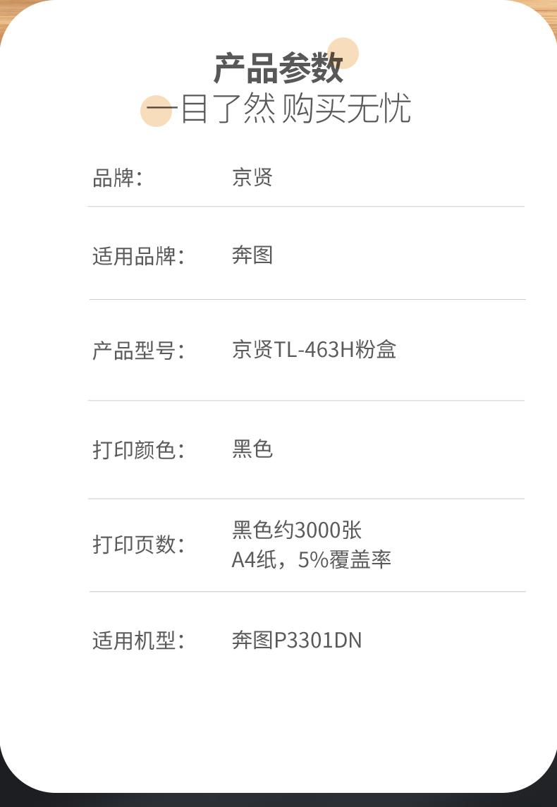 京贤 TL-463H 粉盒 3000页 黑色 适用奔图P3301DN按(只)销售   收藏