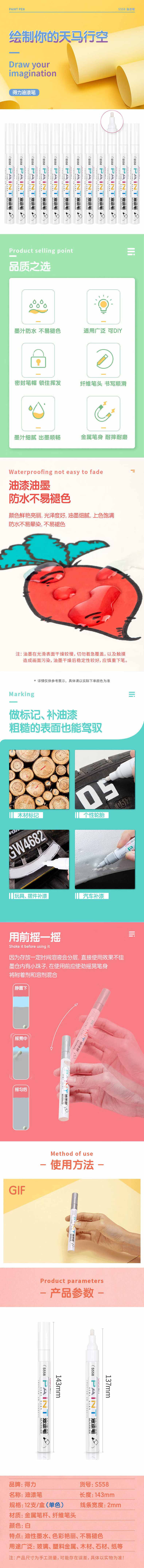 • 得力 S558 油漆笔记号笔 12支/盒 单盒装 白色按(盒)销售